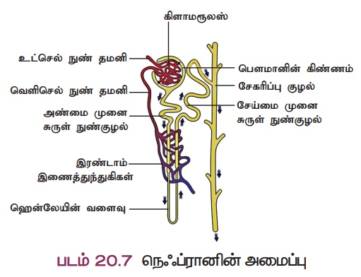 1. ஒவ்வொரு நெஃப்ரானிலும் சிறுநீரக கார்ப்பசல் அல்லது மால்பீஜியன் உறுப்பு மற்றும் சிறுநீரக நுண்குழல்கள் ஆகிய இரு பகுதிகள் உள்ளன.