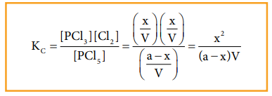 ‘V' கனஅளவுள்ள ஒரு கலனில் 'a' மோல் PCl5 எடுத்துக்கொள்ளப்படுவதாகக் கருதுவோம்.
