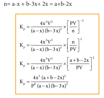 Kp = 4x2 V2 / (a-x) (b-3x)3 (RT)-2
