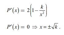 P"(x) = 4k / x3 மற்றும் P"(√k) > 0.