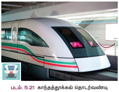 தண்டவாளத்தில் இருந்து மேலே தூக்குகிறது. மற்றொன்று வண்டியை முன்புறம் வேகமாகத் தள்ளுகிறது. தொடர்வண்டியானது, காந்தத் தத்துவத்தின் அடிப்படையில் வண்டியின் நிலைத் தன்மையையும், வேகத்தையும் கட்டுப்படுத்தக்கூடிய வழிகாட்டிகள் வழியாக நகர்கின்றது.