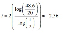 t = 50 எனும்போது x = 2x0, என்பதால் k = 1/50 log2 ஆகும்.