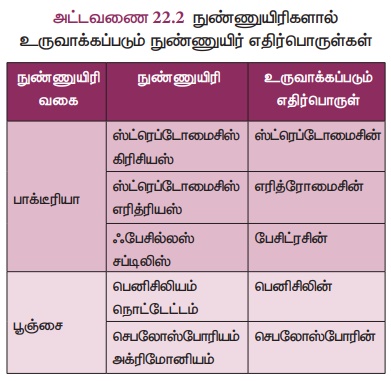 நுண்ணுயிரி எதிர்பொருள்கள்: நுண்ணுயிரிகளின் வளர்சிதை மாற்றத்தின் விளைபொருள்களே நுண்ணுயிரி எதிர்பொருள்கள் (ஆண்டிபயோடிக்) ஆகும். இவை நோயினைப் பரப்பும் நுண்ணுயிரிகளைத் தாக்கி அவற்றிற்கு தீங்கிழைக்கும் அல்லது அவற்றைக் கட்டுப்படுத்தும் தன்மையுடையவை. 1929 ஆம் ஆண்டு அலெக்ஸாண்டர் ஃபிளம்மிங் என்பார் பெனிசிலின் என்ற நுண்ணுயிர் எதிர்பொருளினை முதன்முதலில் தயாரித்தார். மனிதர்களில் நுண்ணுயிர் எதிர்பொருள்களானவை வாந்திபேதி (காலரா), தொண்டைஅடைப்பான் (டிப்தீரியா),