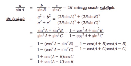 4. ∆ABC இல் sinB/sinC = c- acosB/b - acosC என நிறுவுக.
