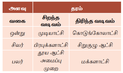 ❖ லட்சிய அரசு, குடியுரிமை, இயல்பான மற்றும் திரிந்த அரசமைப்பு வடிவங்கள் மற்றும் முடியாட்சி, அரசாங்கத்தின் வடிவங்கள் மற்றும் மக்களாட்சி பற்றிய அறிவினைப் பெறுதல்.