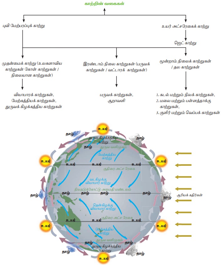 புவியியல் - வளிமண்டல அழுத்தம் மற்றும் காற்றுகள் | 11th Geography : Chapter 6 : Atmosphere