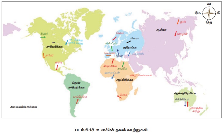 தல காற்றுகள் எங்கெல்லாம் வீசுகிறதோ அங்கெல்லாம் வானிலையில் தாக்கத்தை ஏற்படுத்துகின்றன (படம் 6.18). சில முக்கியமான தல காற்றுகளாவன: