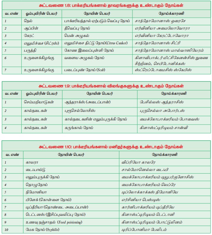 பாக்டீரியங்களால் ஏற்படும் தாவர, விலங்கு, மனித நோய்களின்