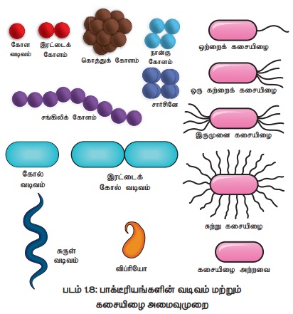 வேறுபாடுகள் அடைகின்றன. பாக்டீரியங்களின் வடிவம் மற்றும் கசையிழை அமைப்பு