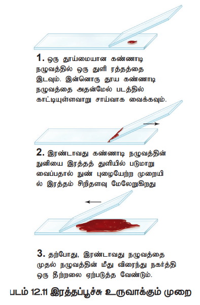இரத்தப்பூச்சு தயாரிக்கும் வழிமுறைகள் (படம் 12.11)