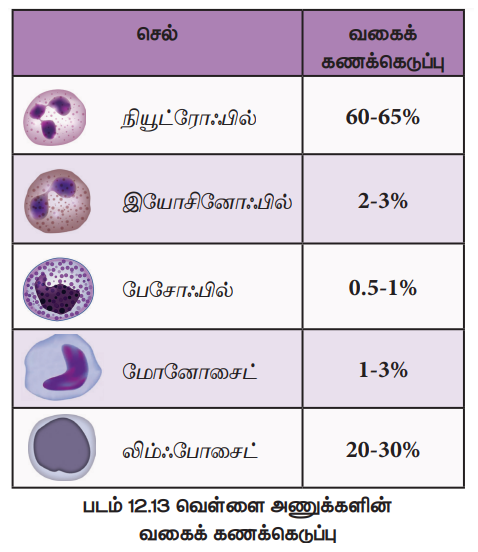 நன்றாகச் சாயமேற்றப்பட்ட இரத்தப்பூச்சைக் கொண்ட கண்ணாடி வில்லையில் உள்ள வெள்ளை அணுக்களின் வேறுபட்ட வகைகளைத் தனித்தனியாகக் கணக்கிடும் முறைக்கு வகைக்கணக்கெடுப்பு (DC) என்று பெயர். இவ்விதம் கணக்கிடப்பட்ட வகைகள் ஒவ்வொன்றும் மொத்த எண்ணிக்கையில் எத்தனை சதவீதம் உள்ளது என்பது குறிப்பிடப்படுகிறது (படம் 12.13).