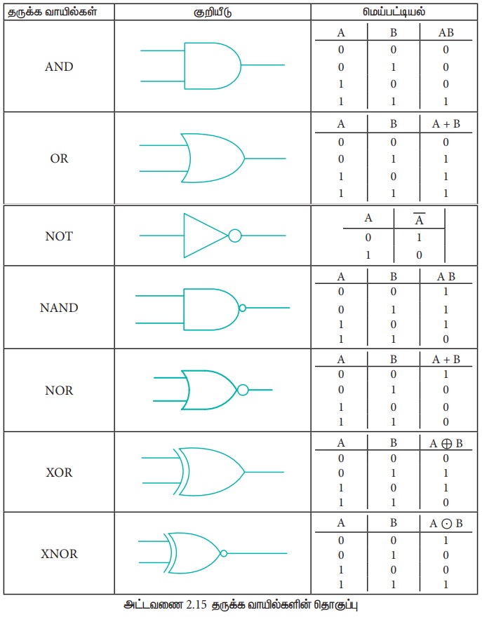 வரையறை, தருக்க குறி, சூத்திரம், மெய்பட்டியல் - அடிப்படை தருக்க வாயில்கள் | 11th Computer Science : Chapter 2b : Boolean Algebra