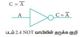 இதனை “C என்பது NOT A” அல்லது “C என்பது Aன் தலைகீழி” என வாசிக்கலாம்.