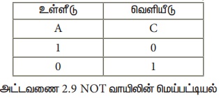 NOT வாயிலின் பூலியன் செயல்பாடு