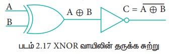 XNOR வாயிலின் வெளியீடு, XOR வாயிலின் வெளியீட்டை NOT வாயிலுக்கு செலுத்தி பெறப்படும்.