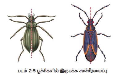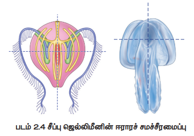 இரண்டு இணை சமச்சீர்ப் பக்கங்களைக் கொண்ட விலங்குகள் ஈராரச் சமச்சீர் அமைப்பு உடையவை எனப்படுகின்றன (படம் 2.4).