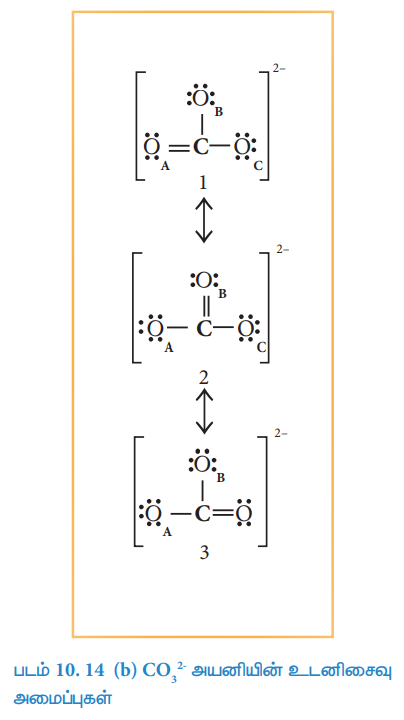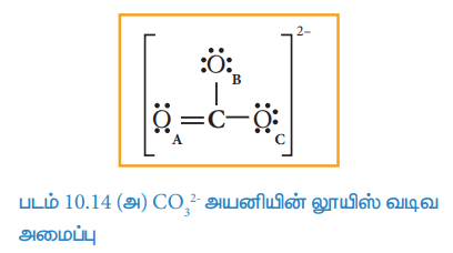 படம் 10.14 (அ) CO2-3 அயனியின் லூயிஸ் வடிவ அமைப்பு