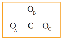 கார்பனேட் அயனியின் அணு அமைவு அமைப்பு (ஆக்சிஜன் அணுக்கள் OA , OB மற்றும் OC என குறிப்பிடப்பட்டுள்ளன.)