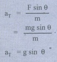 5. மெல்லிய கயிற்றில் கட்டப்பட்டுள்ள ஊசல் குண்டொன்று முன்னும் பின்னும் அலைவுறுகிறது. ஊசல் குண்டின்மீது செயல்படும் விசைகளைக் கூறுகளாகப் பிரிக்கவும். மேலும் θ கோணத்தில் அந்த ஊசல் குண்டு பெறும் முடுக்கத்தைக் கணக்கிடுக?