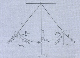 படத்தில் காட்டியுள்ளவாறு ஊசல் குண்டு பெரும் புவிஈர்ப்பு விசையை mg cos θ, mg sin θ எனப் பிரிக்கலாம்.