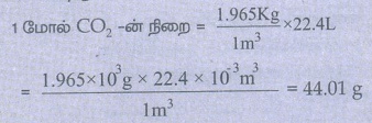 1 மோல் CO2 −ன் நிறை = (1.965Kg /1m3) × 22.4L