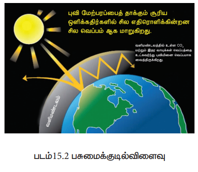 26. பசுமைக்குடில் விளைவு எவ்வாறு உலக வெப்பமயமாதலுக்கு காரணமாகிறது என்பதை விளக்குக.
