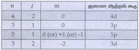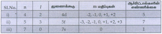 38. பின்வரும் ஒவ்வொன்றிற்கும், துணைக்கூட்டின் குறியீடு, அனுமதிக்கப்பட்ட m மதிப்புகள் மற்றும் ஆர்பிட்டால்களின் எண்ணிக்கையினைத் தருக.