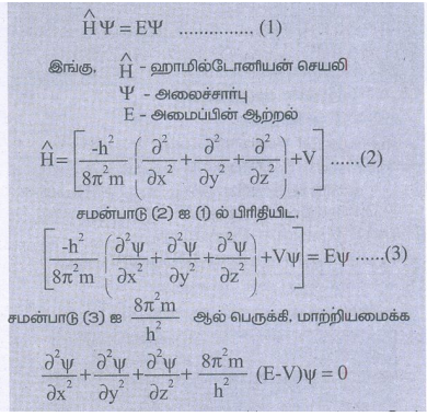 33. காலத்தைச் சார்ந்து அமையாத ஷ்ரோடிங்கர் அலைச்சமன்பாட்டினை சுருக்கமாக விளக்குக.