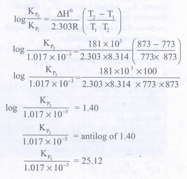 Kp1 = PCO2 = 1.017 × 10-3 atm ; T1 = 773K
