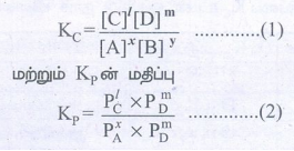 Kp மற்றும் KC ஆகியவற்றிக்கு இடையேயான தொடர்பு: வினைபடு பொருள்கள் மற்றும் வினைவிளை பொருள்கள் ஆகிய அனைத்தும் நல்லியல்பு வாயு நிலைமையில் உள்ள பின்வரும் பொதுவான வினை ஒன்றை நாம் கருதுவோம்.