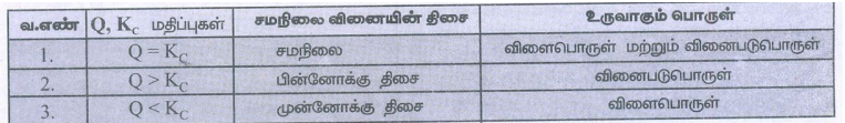 ● Q > KC எனில் வினை பின்னோக்கு திசையில் நிகழ்கிறது.