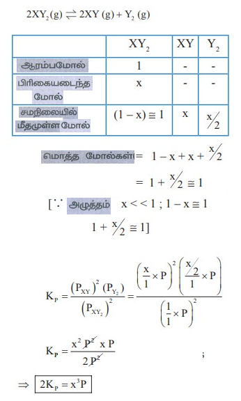 பிரிகை வீதம் x ஒன்றை விட மிகச்சிறிதாக இருந்தால் 2Kp = PX3 என நிருபி. இங்கு P ஆனது மொத்த அழுத்தம் மற்றும் Kp என்பது, XY2 ன் சிதைவடைதல் மாறிலி ஆகும்.
