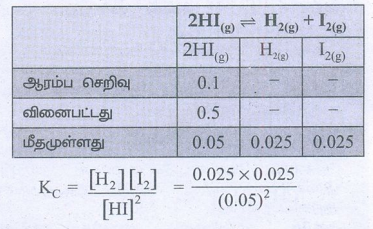 உதாரணம்: H2(g) + I2(g) ⇌ 2HI(g)