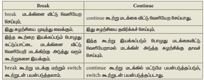 கீழே கொடுக்கப்பட்டுள்ள படம் continue கூற்று இயங்கும் முறையை விளக்குகிறது.
