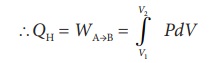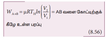 ∴ W = வாயுவால் செய்யப்பட்ட வேலை - வாயுவின் மீது செய்யப்பட்ட வேலை