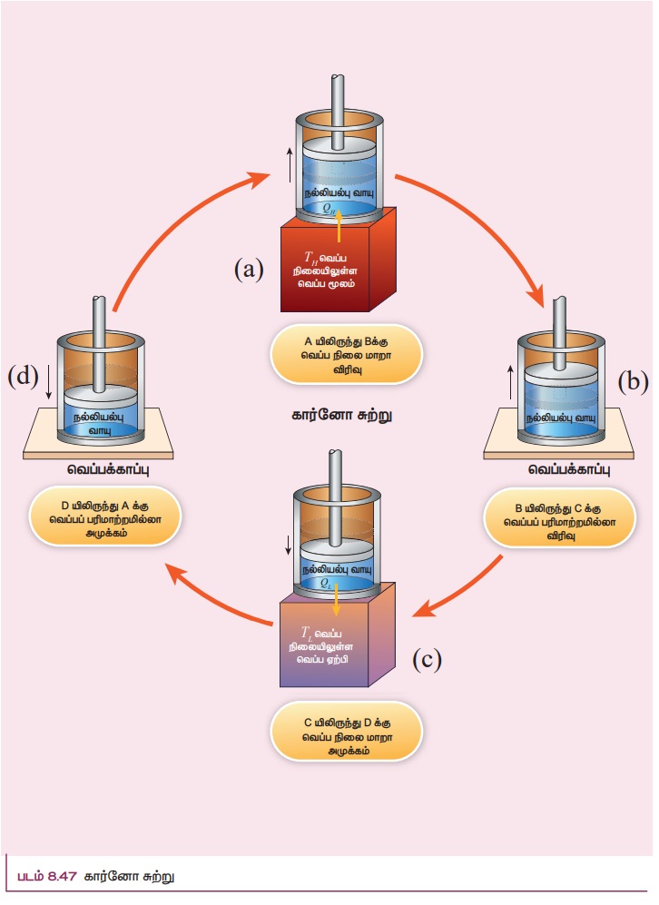 வெப்ப இயக்கவியல் - கார்னோ இலட்சிய வெப்ப இயந்திரம் | 11th Physics : UNIT 8 : Heat and Thermodynamics