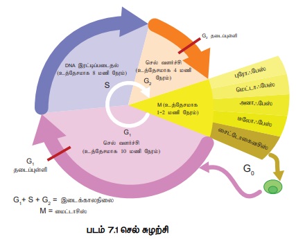 செல் சுழற்சியின் பல்வேறு நிலைகள் பின்வருமாறு (படம் 7.1).