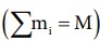 என்பது எல்லாத் துகள்களின் மொத்த நிறை. அதாவது, M என்பது