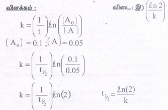 4. ஒரு வினையின் அரைவாழ் - காலத்தை வரையறு. ஒரு முதல் வகை வினையின் அரைவாழ் காலம் துவக்கச் செறிவைச் சார்ந்து அமைவதில்லை எனக் காட்டுக.