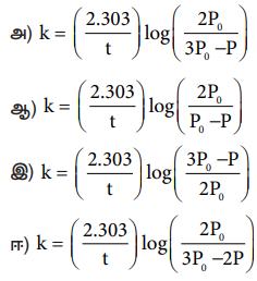 ஈ) வினைவேக மாறிலியின் மதிப்பினைத் தெரியாமல் கொடுக்கப்பட்டுள்ள விவரங்களிலிருந்து pppன் மதிப்பினைக் கண்டறிய இயலாது.