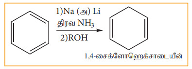 பென்சீனை நீர்ம அம்மோனியா அல்லது அல்கஹாலில் உள்ள Na அல்லது Li ஐக் கொண்டு ஒடுக்கும் போது 1,4- சைக்ளோஹெக்ஸாடையீன் உருவாகின்றது. இம்முறை வளைய டையீன் எளிதில் தயாரிக்கப் பயன்படுகிறது.