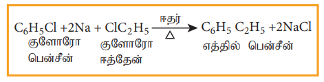 ஹேலோ அரீன்கள், ஹேலோ ஆல்கேன்களுடன் ஈதரில் உள்ள சோடியக் கரைசலுடன் வினைபட்டு ஆல்கைல் பென்சீனைத் தருகிறது. இவ்வினை உர்ட்ஸ்- ஃபிட்டிக் வினை எனப்படும்.