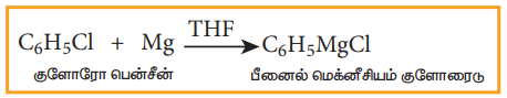 ஹேலோ அரீன்கள் மெக்னீசியத்துடன், டெட்ரா ஹைட்ரோ பியூரானில் (THF) கிரிக்னார்டு வினைபொருளை தருகிறது.