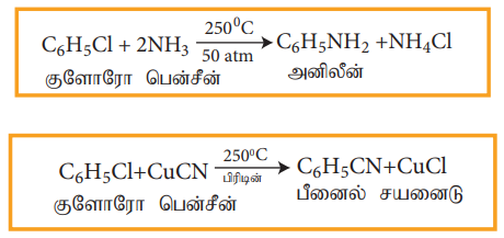 ஹேலோ அரீன்களில் உள்ள ஹேலஜனானது OH-, NH2-அல்லது CN- போன்ற கருக்கவர் காரணிகளால் அதிக வெப்பநிலை மற்றும் அழுத்தத்தில் பதிலீடு செய்யப்படுகின்றன.