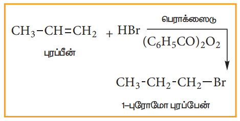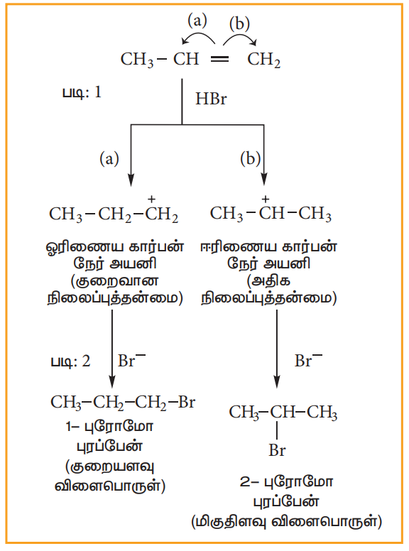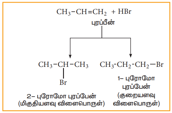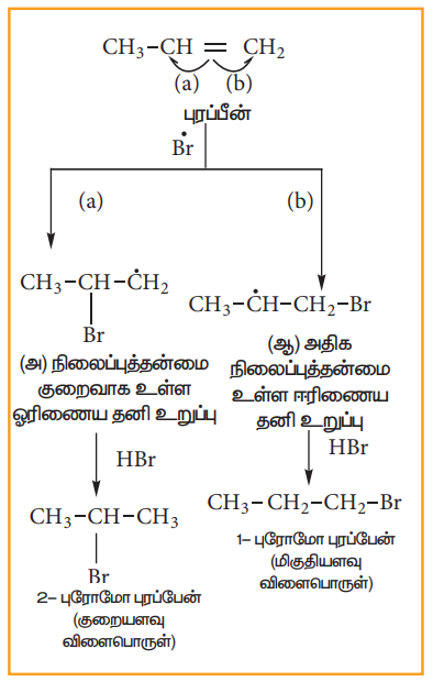 (ஆ) சீர்மையற்ற ஆல்கீன்களுடன் HBr சேர்த்தல் :