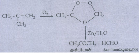 15) ஓசோன், 2-மெத்தில் புரப்பீனுடன் எவ்வாறு வினைபடுகின்றது?