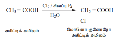 i) கார்பாக்சிலிக் அமிலங்களின் நீர்த்த கரைசல்கள் நீல நிற லிட்மஸ் தாளை சிவப்பு நிறமாக மாற்றுகின்றன...