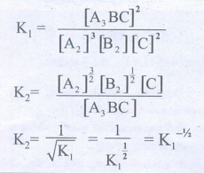 மேற்கண்டுள்ள வினைகளின் சமநிலை மாறிலிகளின் மதிப்புகள் முறையே K1 மற்றும் K2