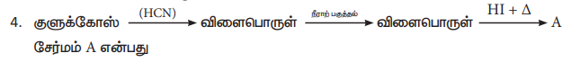 5. கூற்று : சுக்ரோஸின் நீர்க்கரைசல் வலஞ்சுழி திருப்புத்திறனைப் பெற்றுள்ளது. ஆனால், சிறிதளவு ஹைட்ரோ குளோரிக் அமிலத்தின் முன்னிலையில் நீராற்பகுக்கும்போது அது இடஞ்சுழியாக மாறுகிறது. (AIIMS) காரணம் : சுக்ரோஸ் நீராற்பகுத்தலில் சம்மற்ற அளவில் குளுக்கோஸ் மற்றும் ஃபிரக்டோஸ் உருவாகின்றன. இதன் காரணமாக சுழற்சியின் குறியில் மாற்றம் உண்டாகிறது.