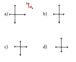 6. எதிர்க்குறி y அச்சு திசையில் முடுக்கமடையும் துகளின் “தனித்த பொருள் விசை படத்தை'' தேர்ந்தெடு. (ஒவ்வொரு அம்புக் குறியும் துகளின் மீதான விசையைக் காட்டுகிறது)